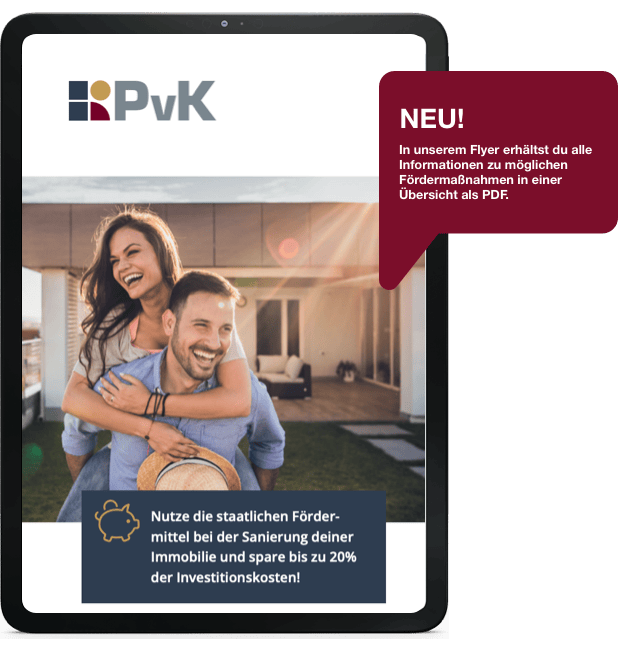Energetische Maßnahmen werden gefördert - Auch ohne Antragsstellung mit dem 20% Steuerbonus. In unserem Flyer "Sonnige Aussichten für dein Eigentum" erhältst du alle Informationen zu möglichen Förderungen in einer Übersicht als kostenlosen Download.